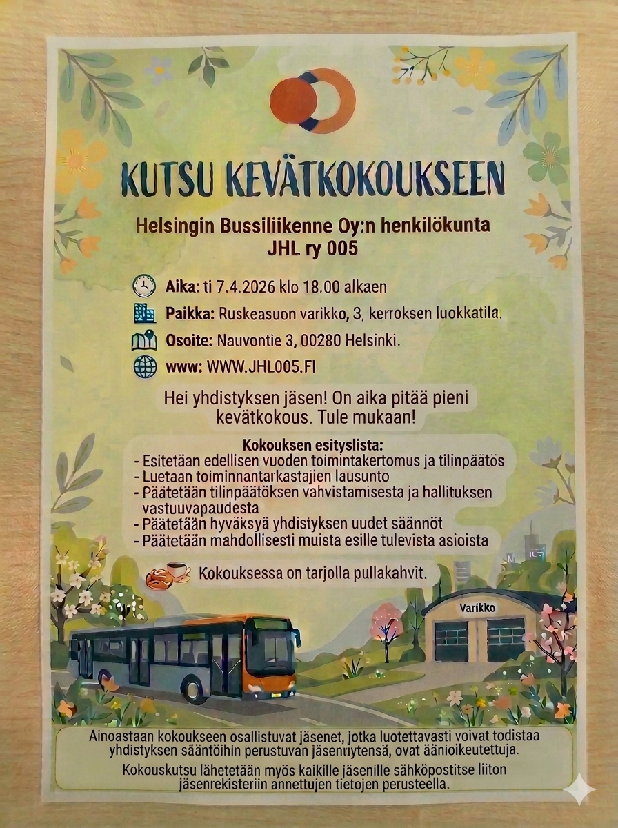 On se aika vuodesta, kun yhdistyksen sääntömääräinen kevätkokous on järjestettävä ja edellisen vuoden toimintakertomus ja tilinpäätös käydään läpi.